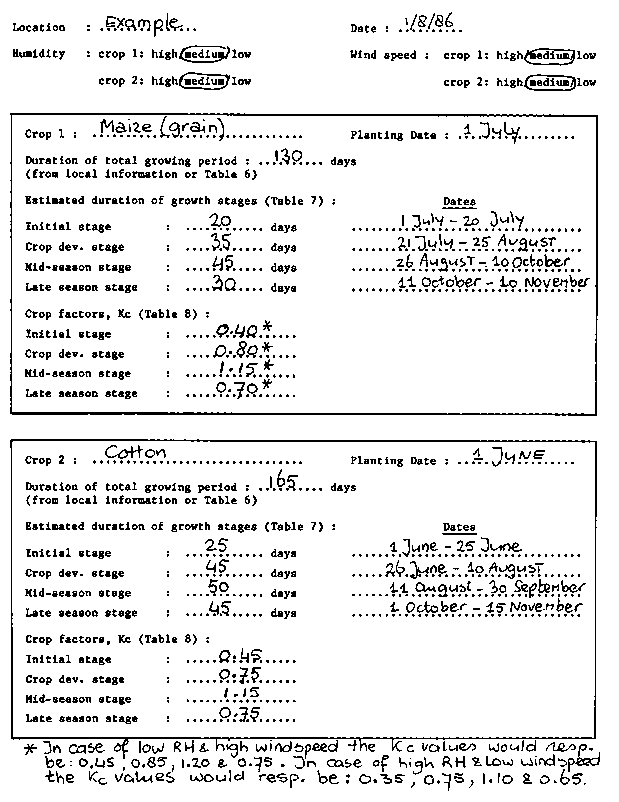 Per crop, four crop factors have to be determined: one crop factor for each of the four growth stages. Table 8 indicates per crop the Kc values for each of the four growth stages.